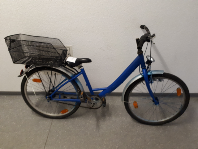 Rad augenscheinlich eigenständig lackiert/ Korb hinten (Basil)/ Rad hat an verschiedenen Stellen Rost (u. a. Kette, Lenker)