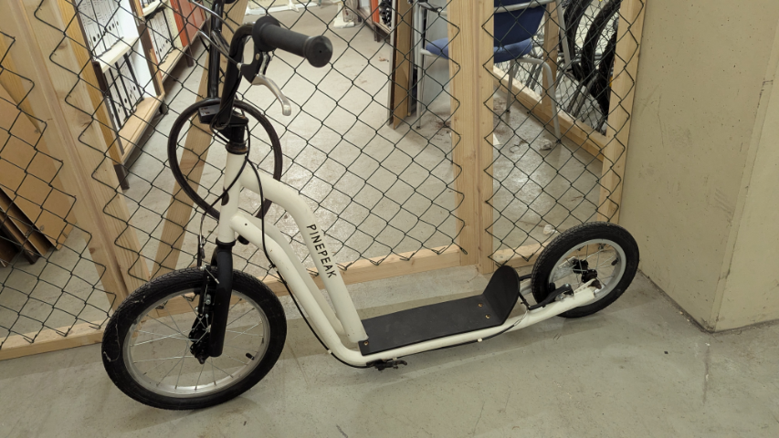 Pinepeak Trettroller, Farbe Weiß mit Schloss, aber nicht abgeschlossen.
