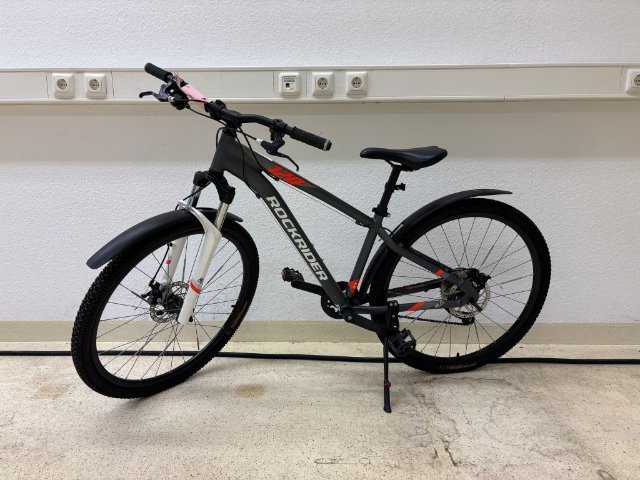 Mountainbike Rockrider GT 120 Sport Trail, 27,5 Zoll, grau, weiße Gabel, Bremsen funktionsfähig