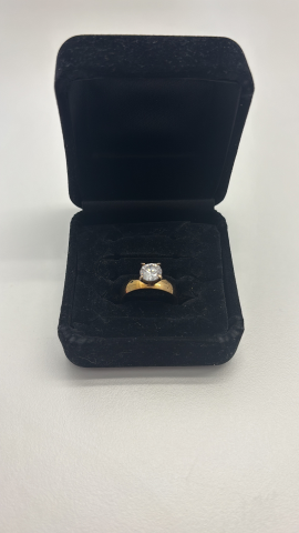 goldfarbener Ring mit Stein, Gebrauchsspuren an der Unterseite
